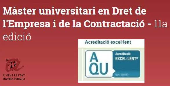 El Màster universitari en Dret de l'Empresa i de la Contractació de la URV (MUDEC) ha rebut el segell d'excel·lència de l'Agència per a la Qualitat del Sistema Universitari de Catalunya (AQU) en l’avaluació de la proposta d'acreditació del seu pla d'estudis. Aquest segell garanteix que, a més de superar el procés d'acreditació, el MUDEC ha obtingut la qualificació global "acreditat en progrés d'excel·lència", que és quan la majoria de criteris d'acreditació de la guia corresponent s'assoleixen amb qualitat i, en conseqüència, s'identifiquen nombroses bones pràctiques que excedeixen el nivell mínim requerit.